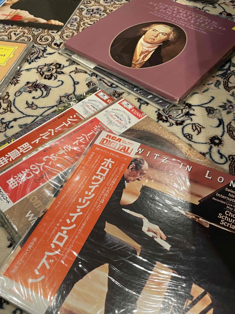 とりあえず仕分けてみようということになり、こどもが作曲家名ごとに並べ始めたのですが、あっと言う間に床はいっぱいに。