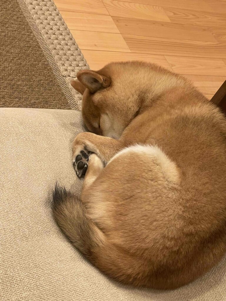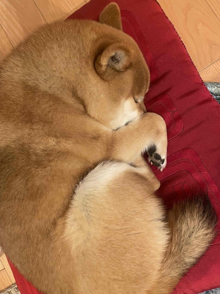 でも、顔を隠す寝姿がかわいいので、タヌキ寝入りも歓迎です。