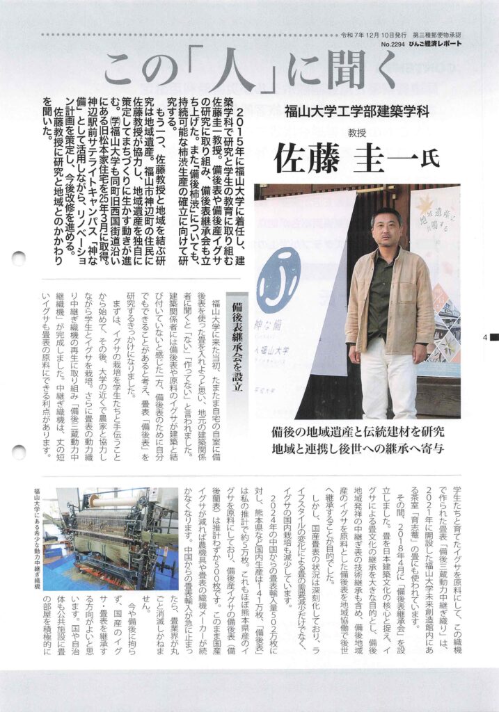 今月の「びんご経済レポート」の表紙に出ておられるではないですか!