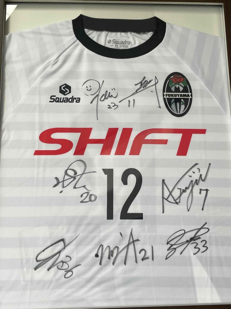その企業に訪問した際、福山シティFCのSHIFTスポンサーのユニフォームが飾ってありました。