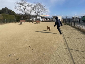 休日のお昼間は小型犬が多い福山サービスエリア内のドックランも、今日ならサモエドとか、セントバーナードなど、寒い地域の犬たちが来ているに違いないと期待してやってきました!