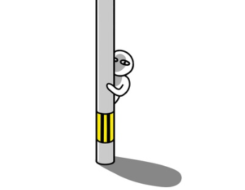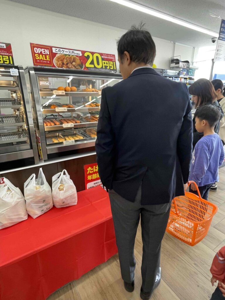 誰もいないイートインスペースで、顔だけそーっと出して見学する社長。