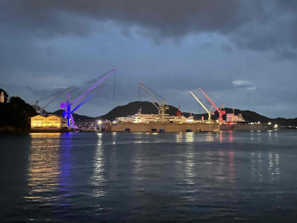 対岸の向島。トワイライトで雰囲気ががらりと変わり、点灯を待つ時間もまたヨシ。