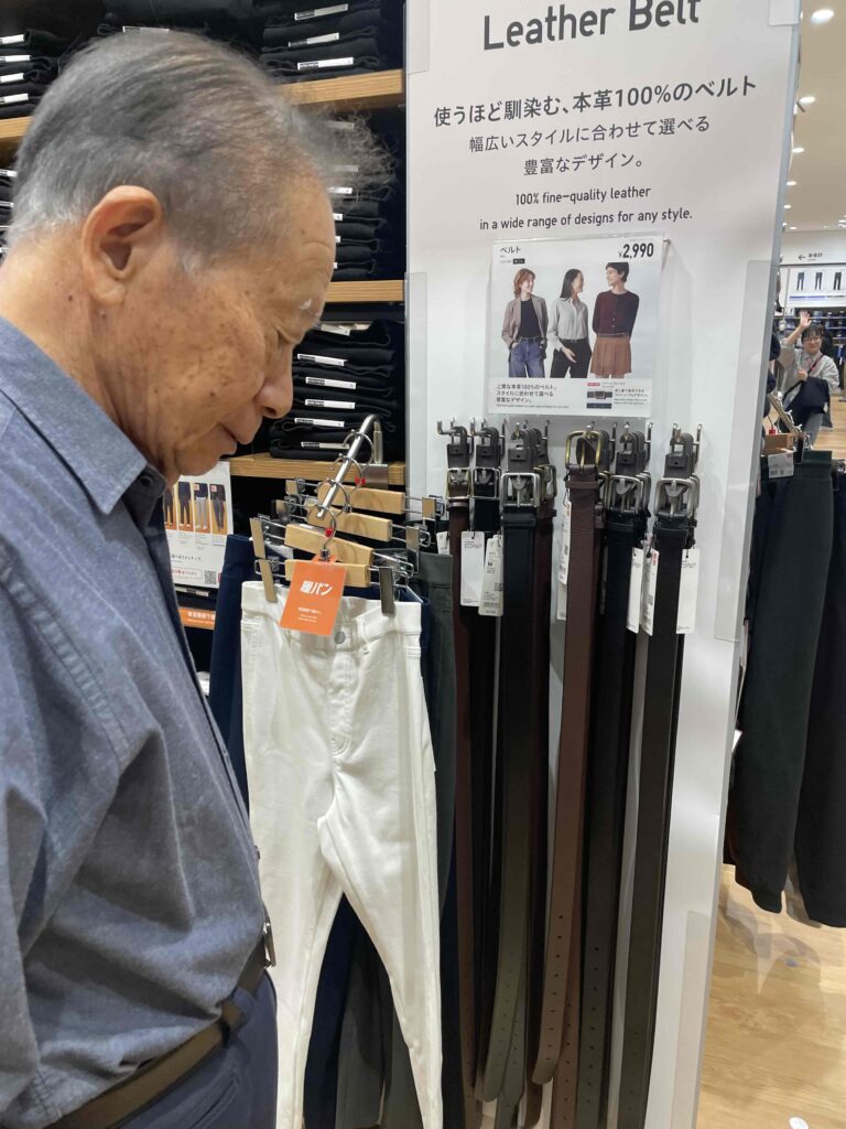 男女のベルトに違いがあるのか分からないけど、男性用売り場のを買おうと提案すると、「わしものー、なんかオカシイ思うたんよ。女の人ばぁおっちゃったけぇのー」って。