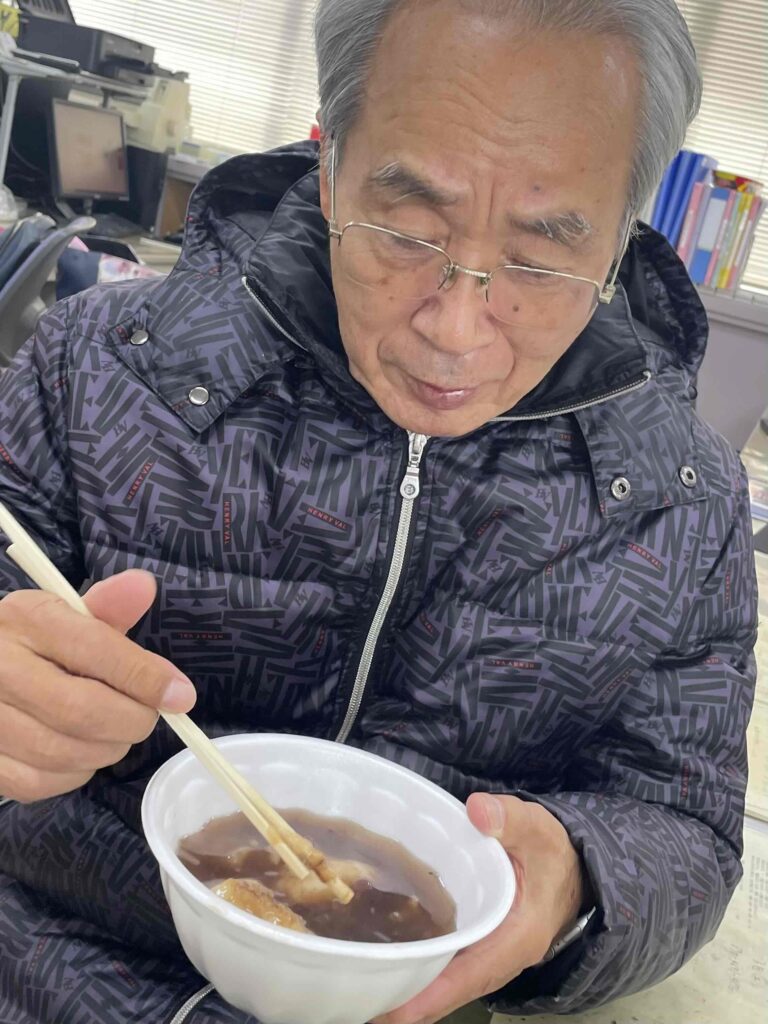 結局ぜんざいを最初に食べたのは専務。14時のことです。