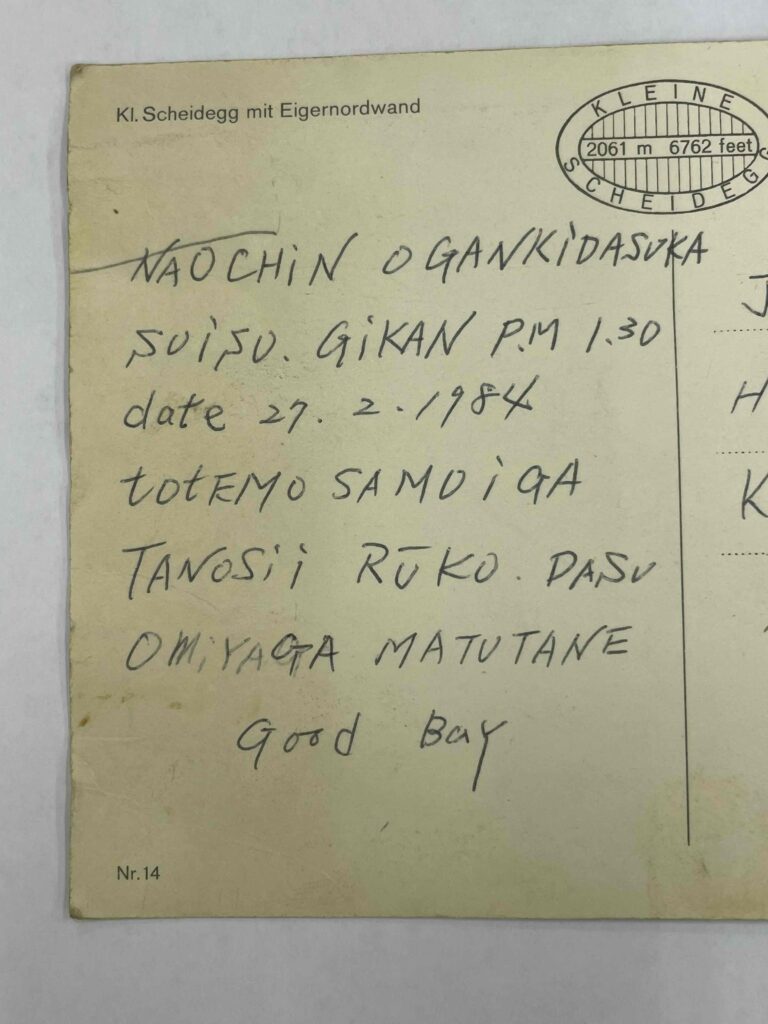 小学校3年生の時、父が旅行先のスイスから送ってきたハガキです。