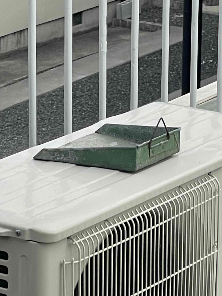 最後に掃き掃除をし、ちりとりを探していると、「室外機の上にあるよ」と言われました。