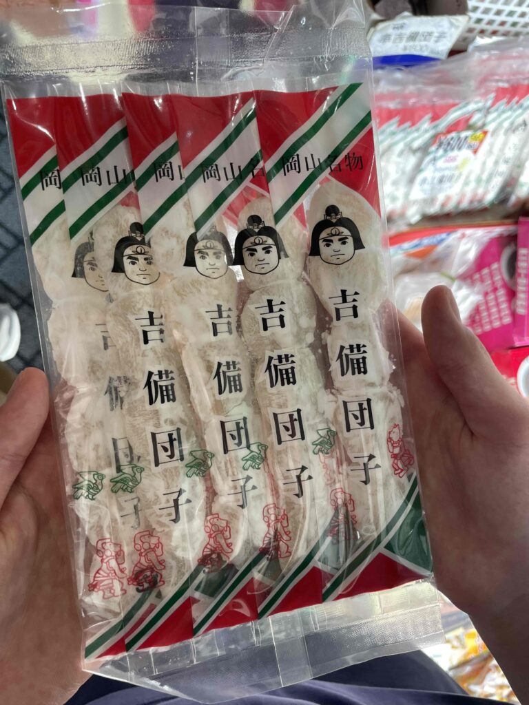 駐車場横のお土産屋さんで、昔ながらの串刺しのきび団子を購入。
