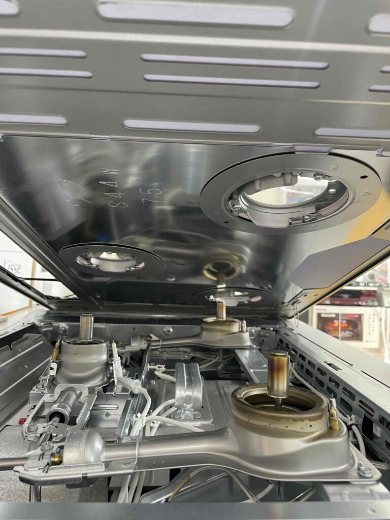 必要であれば、コンロの天板を外して裏面も見てもらいます。