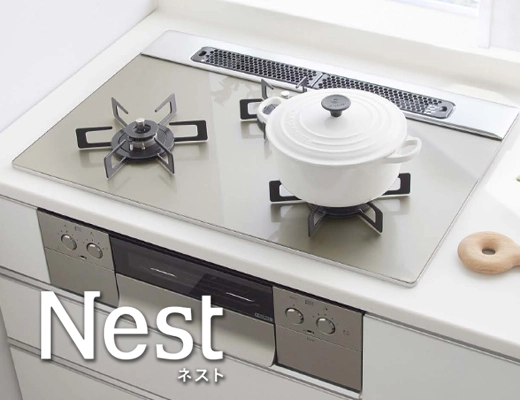 予算抑え目でも、とにかくオシャレなコンロがいい!という見た目重視派の方には、【ノーリツのネスト】はいかがでしょうか。