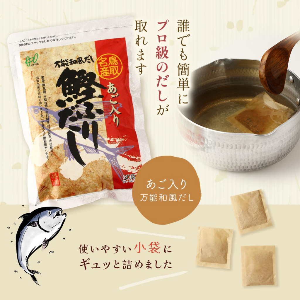 あごだしのだしパックを取り除き、まぜたら出来上がり。
