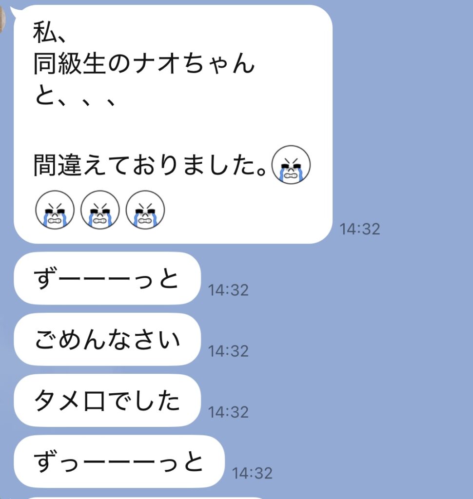 私(なおちゃん)を同級生のなおちゃんと間違えてLINEしてきたことが発覚。