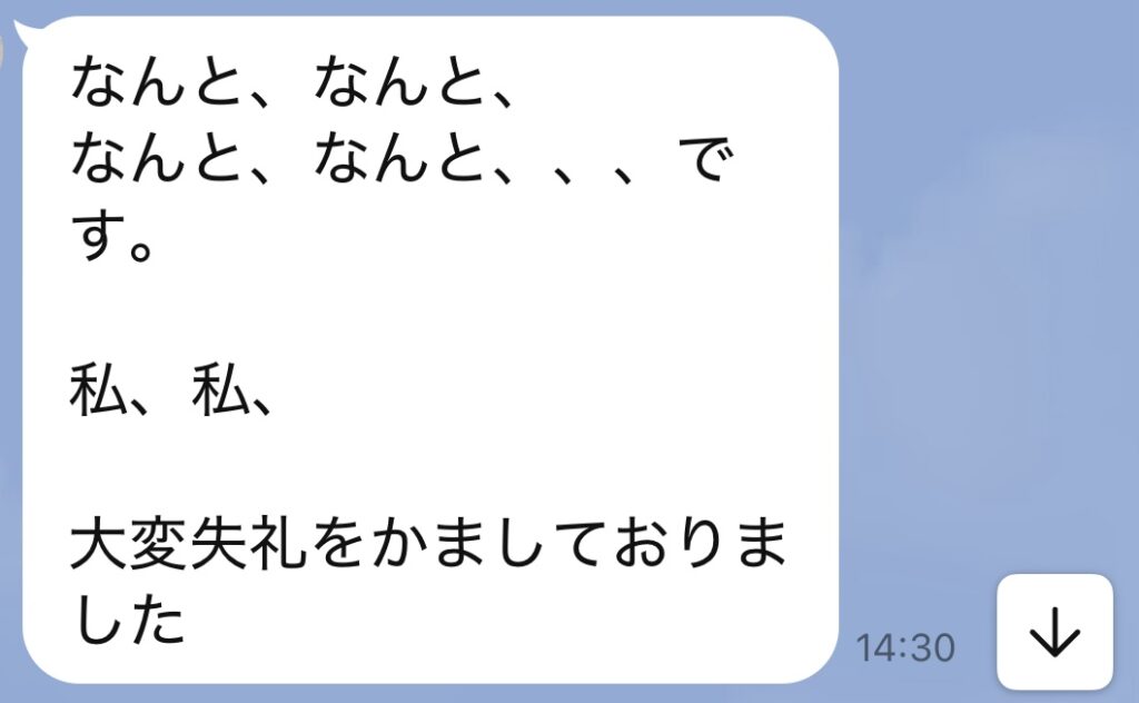それで「全然いいよー」って返したんですけど、何度も送られてくる「申し訳ございません」的なLINE。